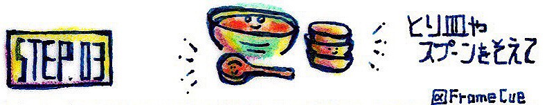 とり皿やスープをよそうスプーンなど、メインの料理に使うものを置くのがやはり1番自然な写真になります。
